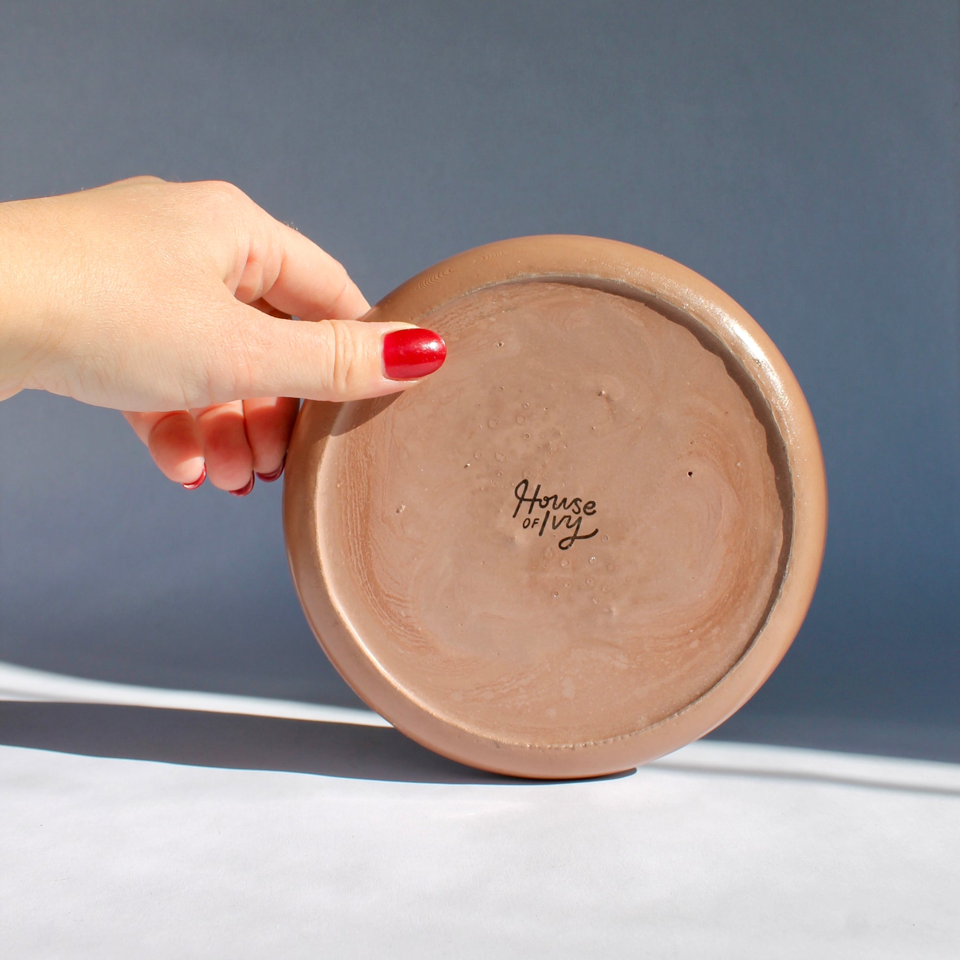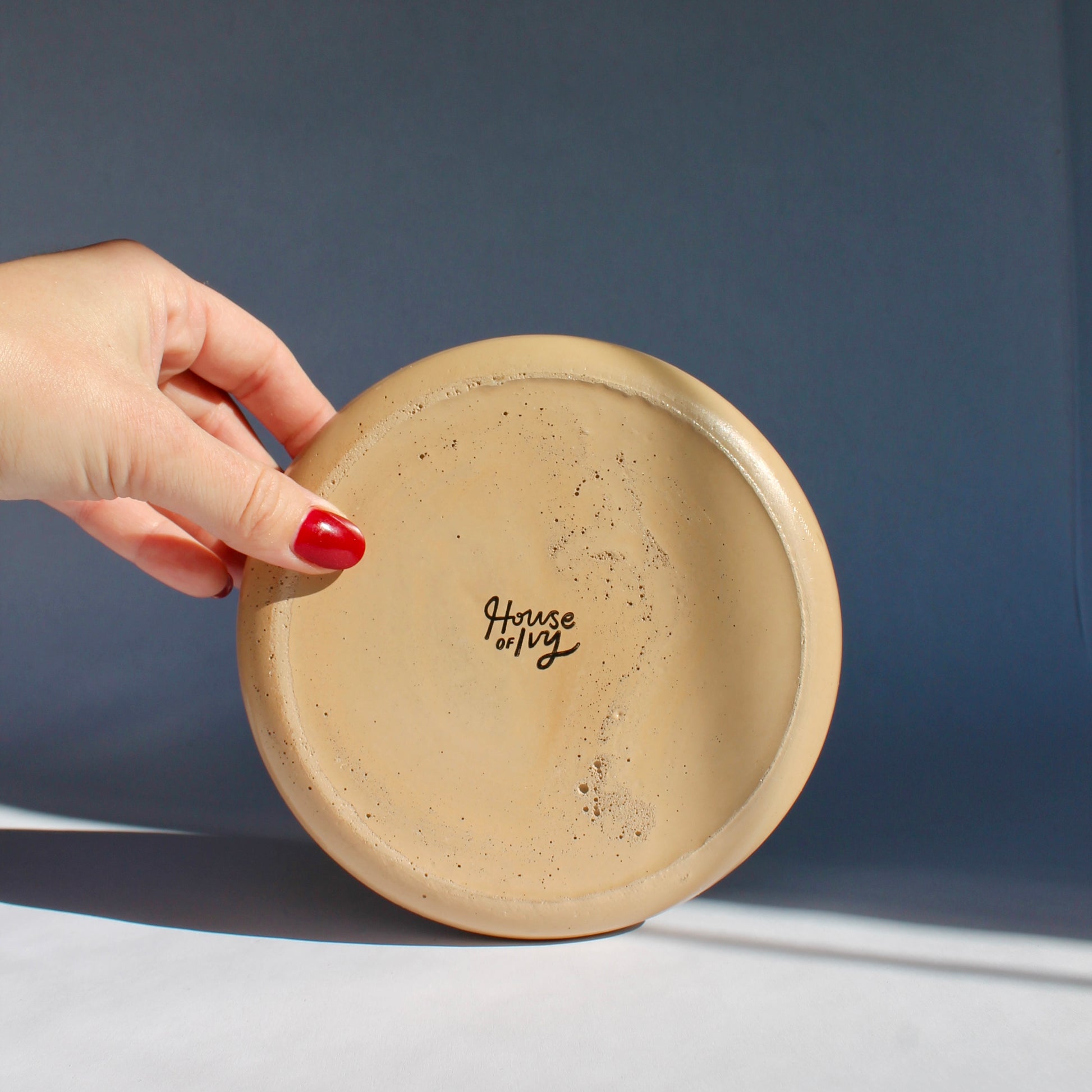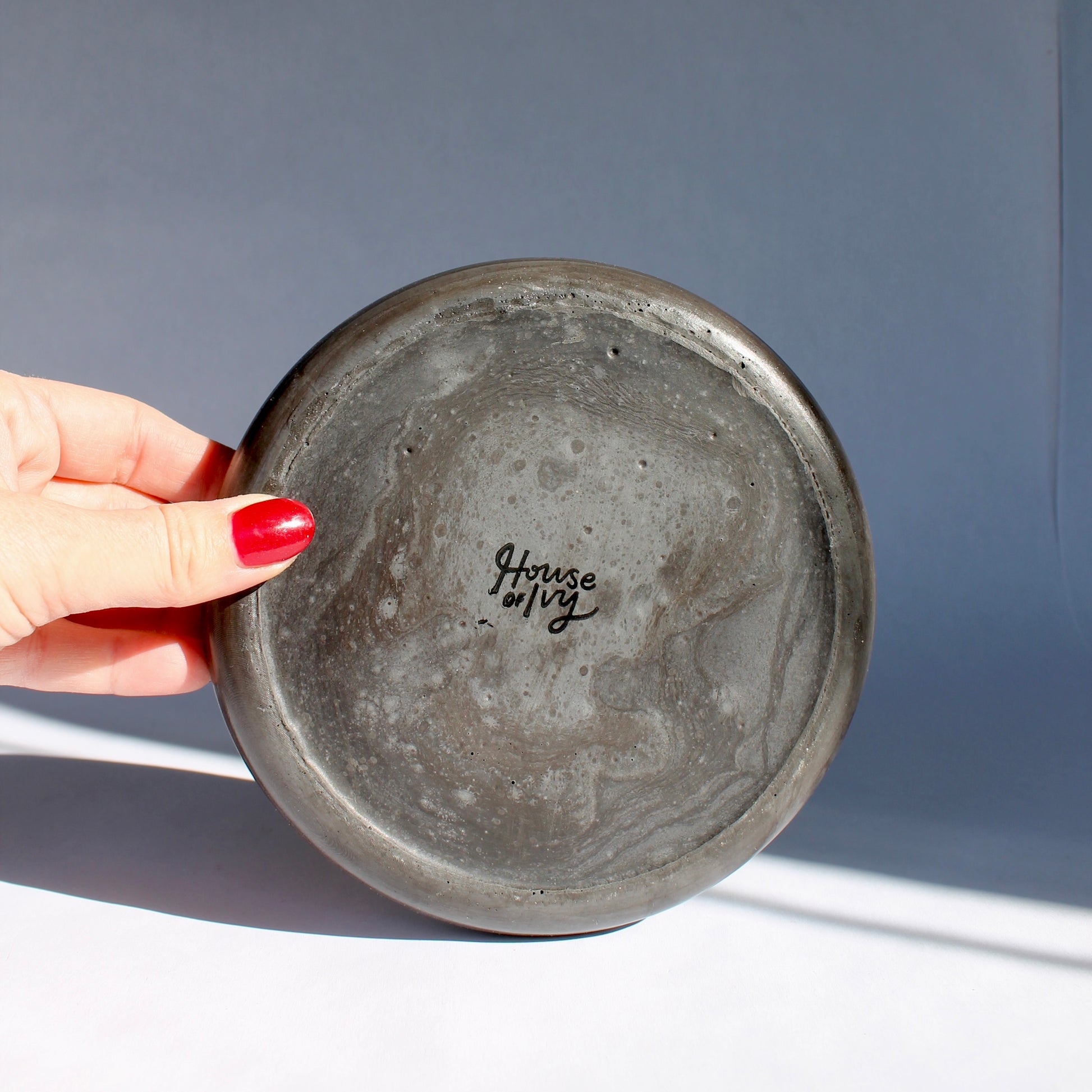 The Darla Tray is bold and beautiful round concrete tray. This is the perfect piece for holding your small and precious items or perfectly styled atop your favorite coffee table books.