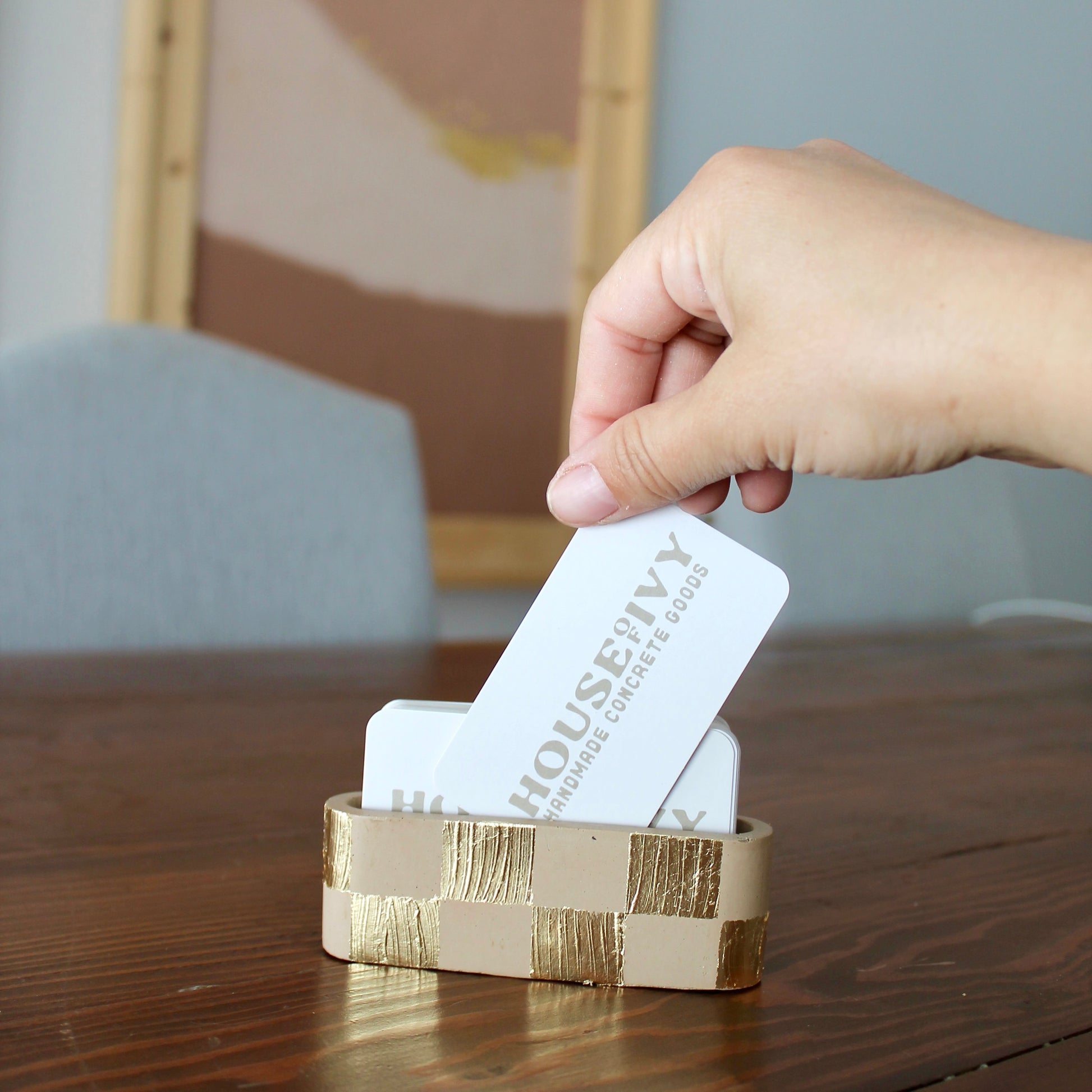 We’ve added a little gold and silver embellishment to our classic House Business Card Holder! Add more personality to your desk, storefront, market display or give the best gift with our gold and silver checkered business card holders.