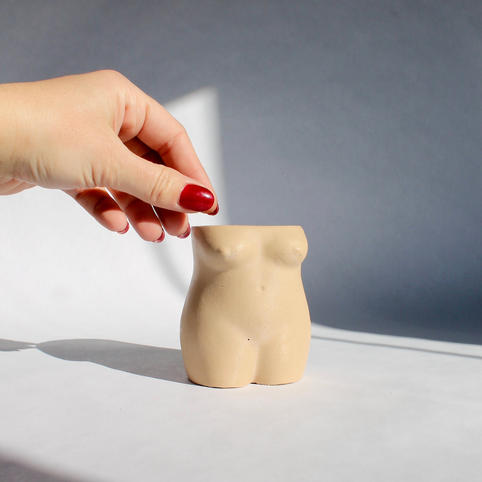 The Olivia Vase is a gorgeous concrete body shaped vase. It's sealed inside to retain water making it a great piece for holding fresh flower arrangements in addition to other uses like holding makeup brushes, toothbrush and toothpaste or pens!